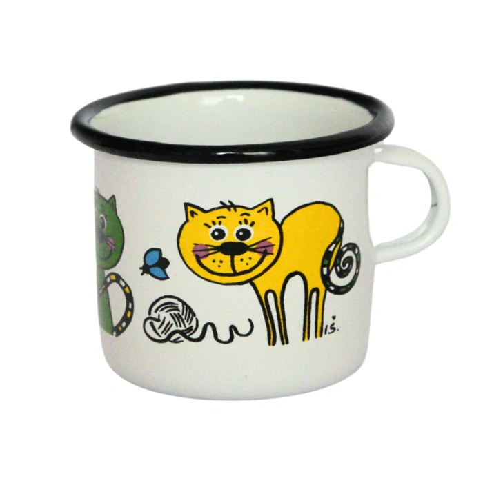 Tento plechový hrnek s motivem koček je praktickým a roztomilým doplňkem, který potěší všechny milovníky zvířátek. Díky kompaktní velikosti 6 cm je ideální na cestování, táboření, kempování nebo jen jako stylový hrnek doma.