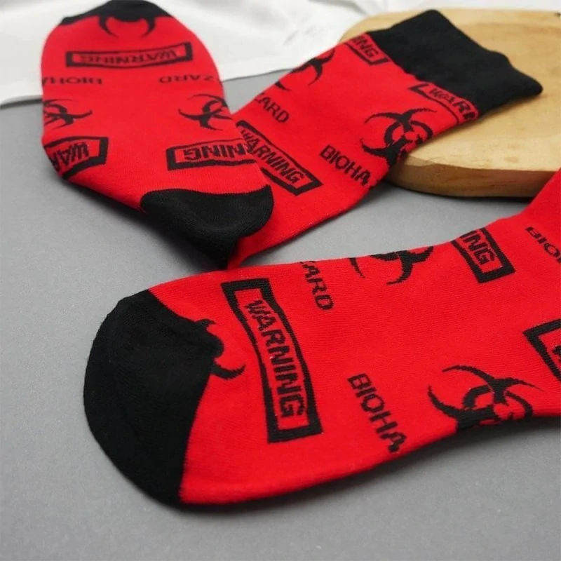 Chcete darovat něco opravdu nečekaného? Ponožky Biohazard jsou skvělým tipem na srandovní dárek pro muže i ženy, kteří mají smysl pro humor. Díky výraznému motivu BIOHAZARD jsou nepřehlédnutelné a stanou se ozdobou každého šuplíku s prádlem.