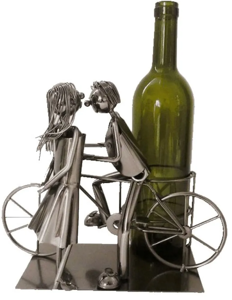 Cyklistika a víno – dvě vášně, které se skvěle doplňují. Tento ručně vyráběný kovový stojan na víno Ona a on na kole je netradičním dárkem, který potěší nejen milovníky cyklistiky, ale i všechny, kteří si rádi vychutnají sklenku dobrého vína.