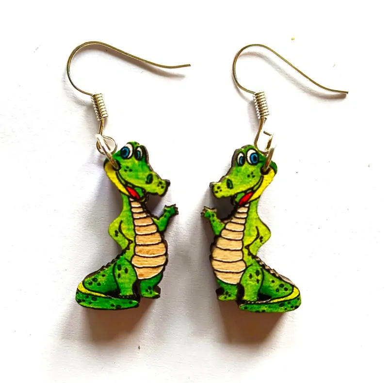 Dřevěné náušnice krokodýl – hravý doplněk pro každou příležitost 🐊