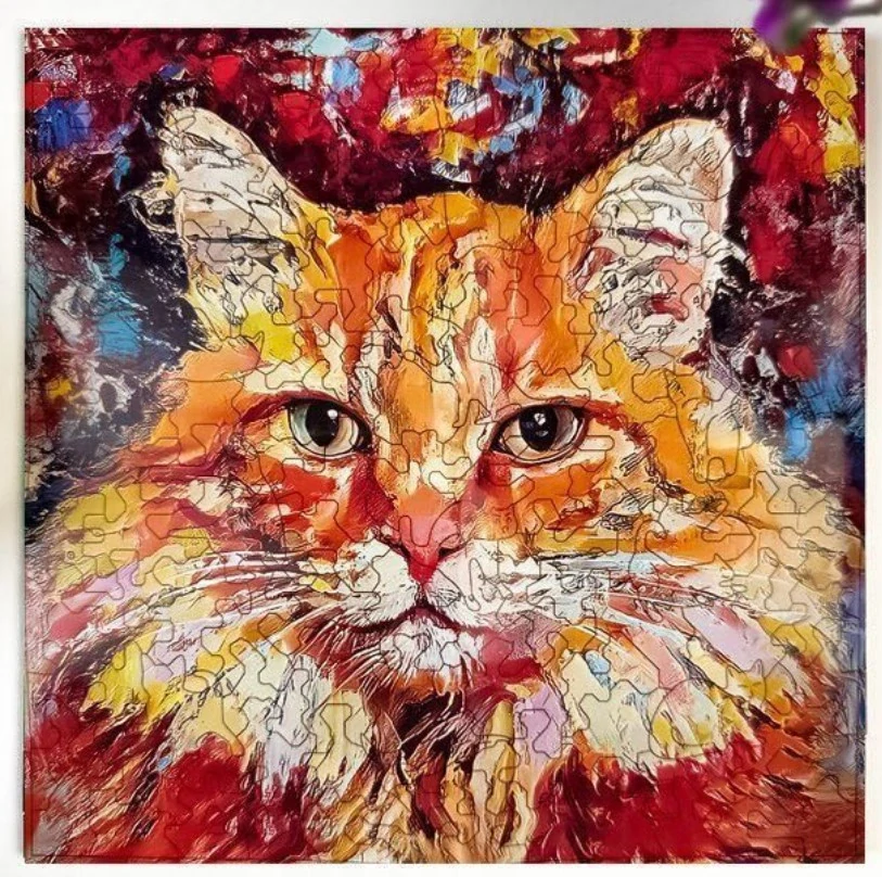 Dřevěné puzzle zrzavá kočka je originální a hravý dárek, který potěší každého milovníka zvířat. Skvělá aktivita pro děti i dospělé – kombinace relaxace, logiky a kreativního tvoření, která nikdy neomrzí.