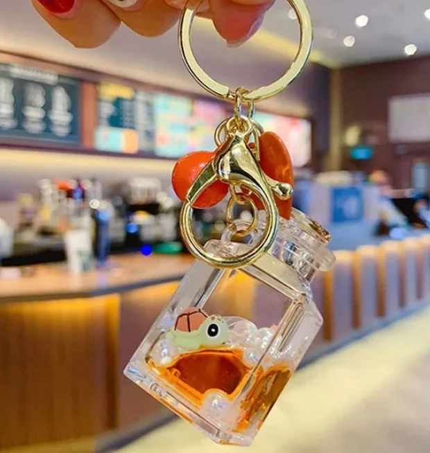 Přívěšek na klíče želvička v oranžové tekutině, je nejen skvělou klíčenkou, ale zároveň unikátní antistresovou pomůckou pro děti i dospělé. Garantujeme vám, že se na tuto klíčenku vydržíte dívat dlouhé minuty a výborně vás zabaví o přestávce ve škole, v práci, při čekání u lékaře nebo třeba při cestě autobusem. Unikátní dvousložková klíčenka nadchne každého milovníka těchto sladkých drobností. Klíčenku doporučujeme jako malý dárek k svátku, ke dni dětí nebo jako drobný dárek pro radost.