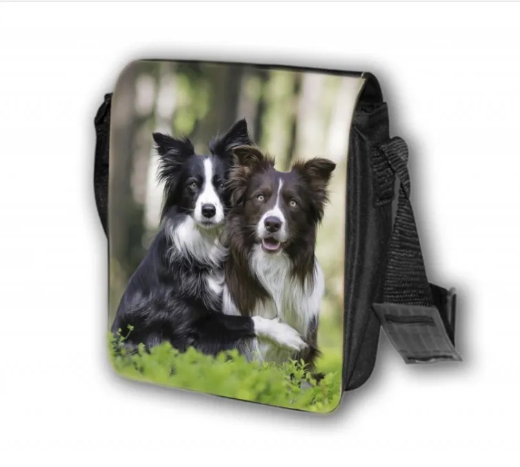 Luxusní taška na zakázku s vlastní fotografií zvířecího miláčka. Nylonová vycházková taška s popruhem přes rameno, černé barvy. Velikost tašky je 21 x 20 cm. Na omyvatelné, odnímatelné ploše velikosti 17 x 20 cm bude Vaše fotografie. Hloubka tašky je 5,5 cm. Délka popruhu je nastavitelná až na 150 cm. Taška může sloužit na mobil, klíče, pamlsky, vodítko, pláštěnku, nebo třeba tablet.